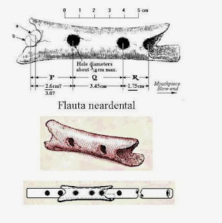 La bramadera consistía en una pequeña placa de hueso o marfil atada al extremo de una cuerda que el músico hacía girar sobre su cabeza a gran velocidad para emitir un zumbido característico. Habitualmente estaban profusamente decoradas y en nuestros tiempos podemos seguir escuchando su música entre algunos Pueblos de Australia y África.Divje Babe es una pequeña cueva al noroeste de Eslovenia donde apareció un pequeño fémur de osezno que presentaba cuatro agujeros perfectamente alineados por un lado, y un agujero más en el otro lado emplazado perfectamente para ubicar el dedo pulgar. El hueso en cuestión arroja una datación de 43.000 años y se encontraba en un yacimiento musteriense, por lo que no tardaron en surgirle detractores a su naturaleza de flauta entre quienes desprecian la capacidad neandertal para crear música y otras manifestaciones artísticas.